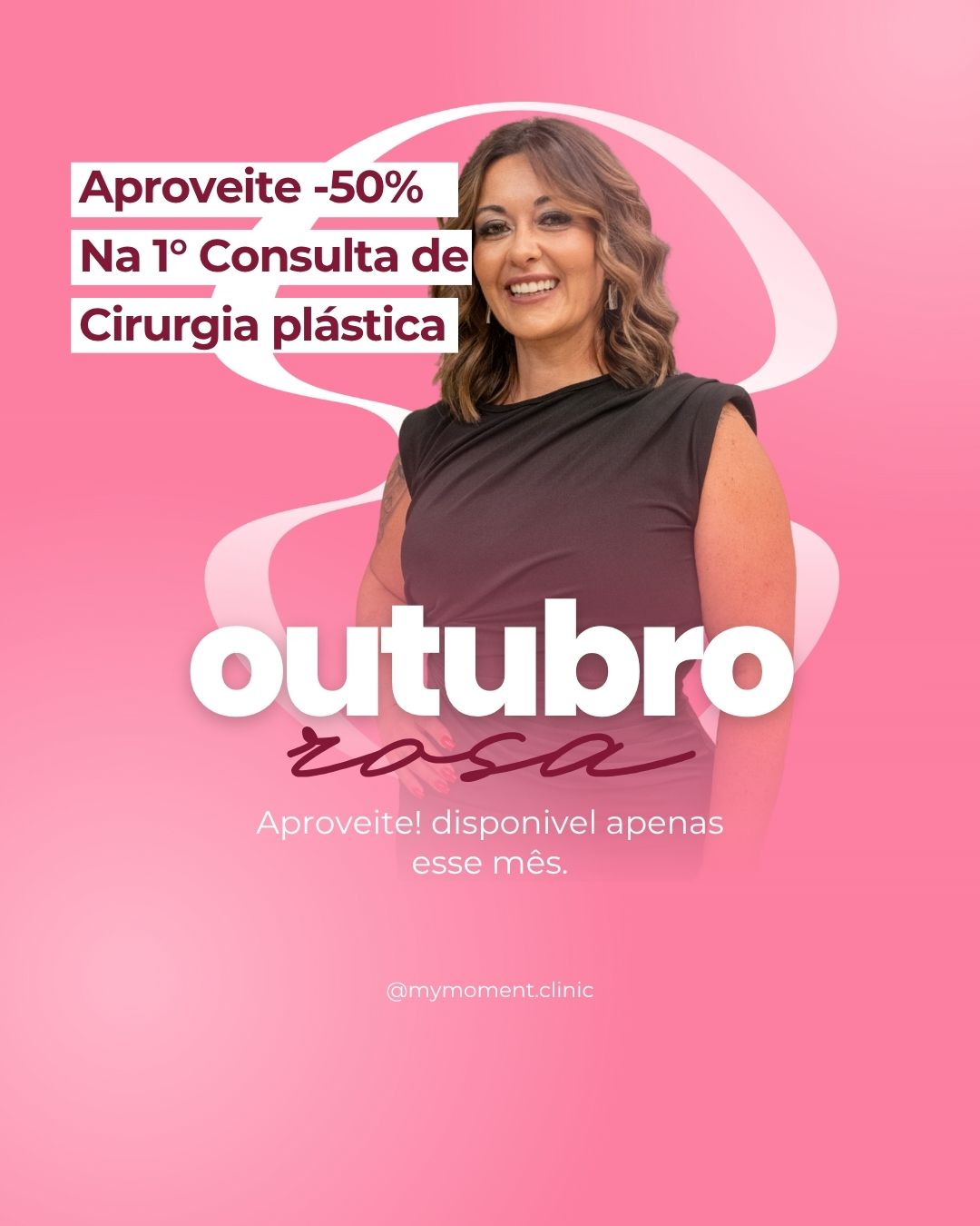A MyMoment entra o Outubro Rosa com uma oferta especial. 50% de desconto na 1ª consulta de Cirurgia Plástica, este é o seu momento.